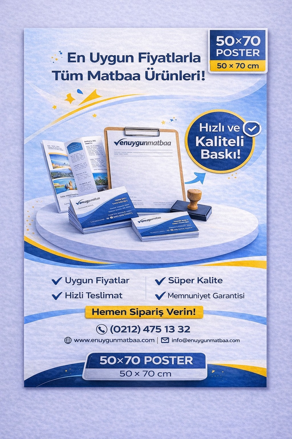 En Uygun Matbaa, modern baskı makineleri ve deneyimli üretim ekibi ile afiş baskı, poster baskı, reklam afişi, kampanya afişi ve kurumsal tanıtım posterleri konusunda kaliteli ve hızlı çözümler sunmaktadır.