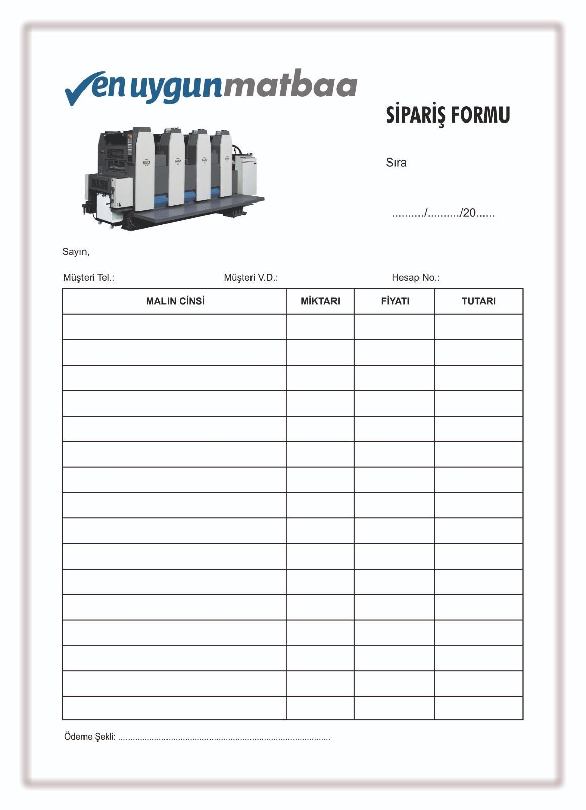 En Uygun Matbaa, işletmelerin ihtiyaçlarına uygun, kaliteli ve profesyonel A4 Sipariş Formu 4 Renk baskı çözümleri sunar. Hazırlanan formlarda net baskı, güçlü renk dengesi, kurumsal görünüm ve kullanım kolaylığı ön planda tutulur. Böylece ortaya yalnızca basılmış bir evrak değil, doğrudan sipariş yönetimini kolaylaştıran profesyonel bir iş aracı çıkar.