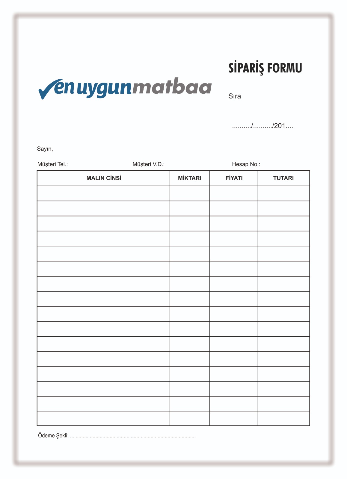 Eğer siz de A5 Sipariş Formu 2 Renk baskı, sipariş formu baskı, koçanlı sipariş formu, 2 renk form baskı, kurumsal belge basımı ve uygun fiyatlı matbaa hizmeti arıyorsanız, En Uygun Matbaa doğru adrestir. Düzenli sipariş, sağlam kayıtla başlar. Sağlam kayıt ise işin hızını, kalitesini ve güvenini artırır.