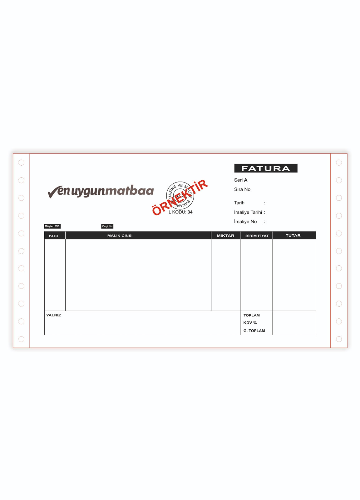 Tek renk baskı bazen yanlış şekilde “çok sade” olarak düşünülür. Oysa doğru tasarlanmış bir tek renk sürekli form fatura, son derece profesyonel görünebilir. Çünkü burada güç, renk çokluğundan değil düzenli yerleşimden, net çizgilerden ve temiz baskıdan gelir.